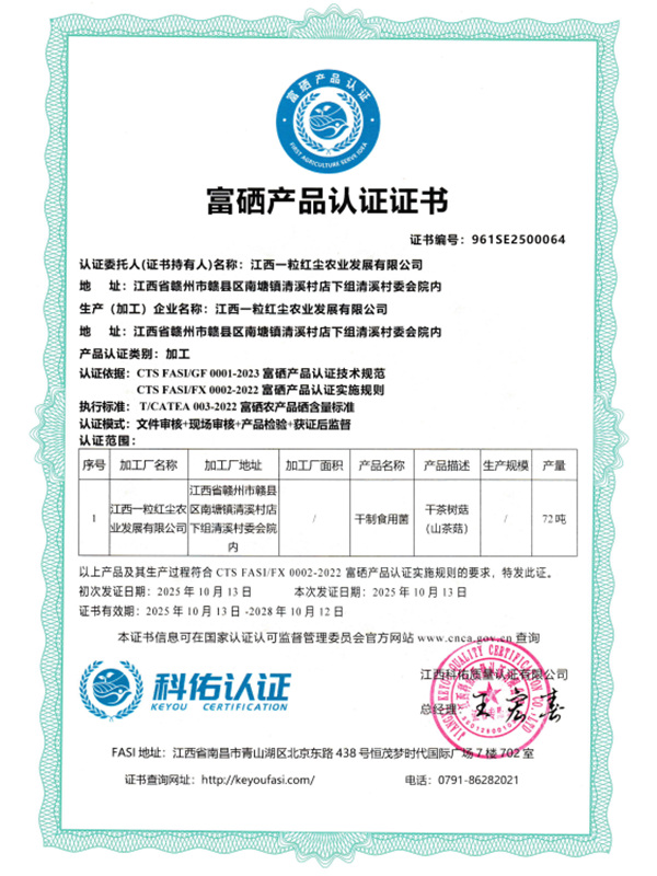 江西一粒紅塵農(nóng)業(yè)發(fā)展有限公司是一家總部位于江西省贛縣的現(xiàn)代農(nóng)業(yè)多元型企業(yè),專注于食用菌的研發(fā)種植、深加工、貿(mào)易、研教培、農(nóng)文旅等全產(chǎn)業(yè)鏈發(fā)展。公司秉承“健康、綠色、共享、共贏”的核心價值觀,致力于引領鄉(xiāng)村振興之路,旨在成為......